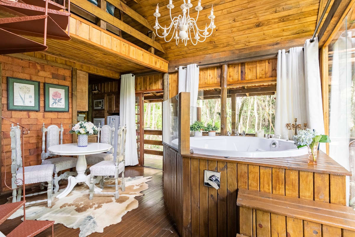 Chalé Romântico na Serra, իդեալական է այն զույգերի համար, որոնք ցանկանում են հանգստանալ և վայելել յուրահատուկ պահեր այս հանգիստ և ոճային տարածքում: Շալես Քրիստալը հանգիստ վայր է բնության գրկում ։ Այն ունի լոգարան՝ լոգանքի աղերով, հորիզոնի և աստղերի լիարժեք տեսարանով, տուփաձև մահճակալ՝ 600 թերթոց սավաններով, գազով ցնցուղ և ապակե առաստաղ, ամբողջական խոհանոց, բուխարի ներսում և դրսում և օդորակված նկուղ։ Մենք նախաճաշը մատուցում ենք զամբյուղում, որը ներառված է օրական վճարի մեջ։