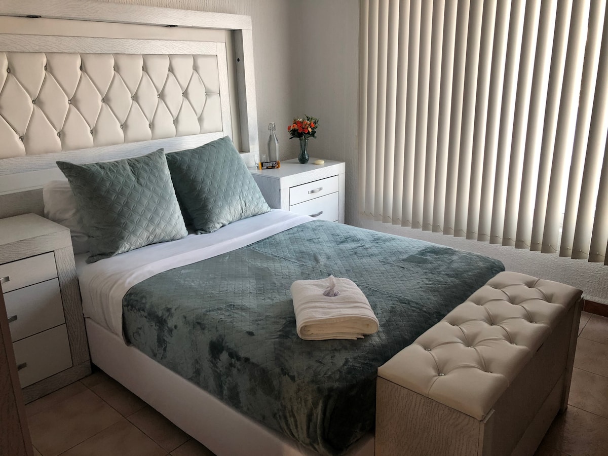 Բարի գալուստ Գուանաջուատո նահանգի Լեոն քաղաքում գտնվող ձեր տուն ։ Մեր տարածքը նախագծվել է ձեր հարմարավետության և անվտանգության նկատառումներով ։ Գտնվելով քաղաքի լավագույն տարածքում ՝ դուք կվայելեք ռեստորանների, լավագույն առևտրի կենտրոնի և հիմնական հետաքրքրություն ներկայացնող տարածքների մոտակայքը: Ժամանելուն պես ձեզ կդիմավորի հարմարավետ մթնոլորտ ՝ հագեցած օդորակիչով, բարձրորակ կահույքով, կահավորված խոհանոցով և առանձին լոգասենյակով ։ Վայելեք ցուցադրված սենյակը և կաբելային հեռուստատեսության ծառայությունը ։ Տարածքն ունի գերարագ ինտերնետ ։