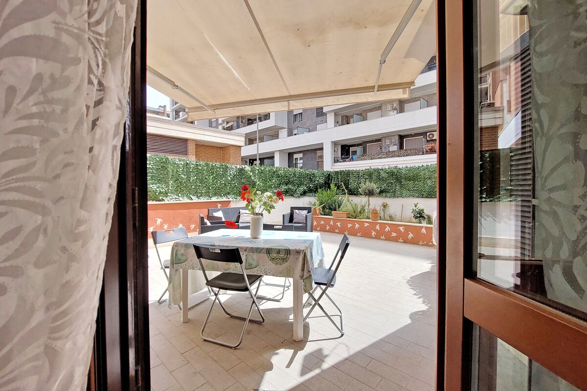 Հանգստացեք այս խաղաղ և կենտրոնական վայրում։ Տունը գտնվում է Ֆիումիչինո օդանավակայանից մեկ գնացքի կանգառի, իսկ Հռոմի կենտրոնից՝ 5 կանգառի հեռավորության վրա, ինչը հեշտացնում է ձեր այցը։ Տան դիմաց գտնվում է WOW MALL-ը, որտեղ կա անհրաժեշտ ամեն ինչ, և առաջարկվում է խանութների, բարերի և ռեստորանների լայն ընտրանի։ Ներսում կան GREEN FOREST-ը և Color Hotel-ը, որտեղ մեծահասակներն ու երեխաները կարող են զվարճանալ։ Սեփականությունում պետք է վճարվի 3,50 եվրո բնակարանային հարկ մեկ անձի համար։