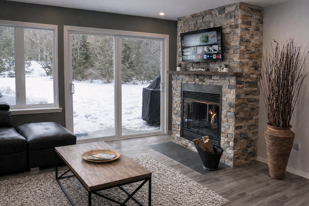 We welcome you to enjoy our home away from home, to relax and unwind, near the heart of Mont-Tremblant. Our place is located on La Bête Golf course, 5 minutes from the Village and Tremblant Resort. In the summertime, guests can relish in the heated in-ground pools, and children can have fun at the playground across the street. Meanwhile in the wintertime, guests can cozy up in-front of the wood-burning fireplace after a wonderful day outside in the snow.