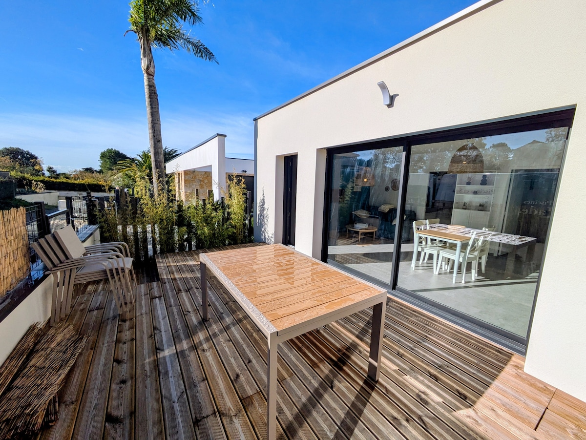 Էկզոտիկ միջավայրում, հարմար է զույգերի, միայնակ ճանապարհորդների և (երեխաներով) ընտանիքների համար։ PORNIC - ի և Noirmoutier կղզու միջև, Marais Breton - ի հետ դեկորի համար և առաջին լողափերից ընդամենը մի քանի րոպե հեռավորության վրա (3 կմ) 75 մ2 բացօթյա տեռասի անկախ տուն, ապաստանած բակ պինգ - պոնգի սեղանով, մանկական ոտքով և խաղահրապարակով ՝ վոլեյբոլի ցանց, թենիս, բասկետբոլի զամբյուղ, պետանկի կորտ, դարթս... մինչև 5 հոգու համար, որոնք հաշվում են երեխաներին և մանուկներին