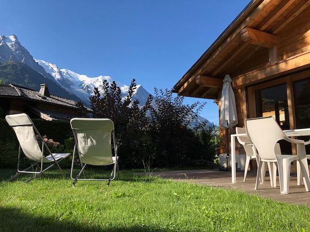 Charming studio in Les Praz, facing south, with private garden & terrace and breathtaking views of the entire Mont Blanc mountains. Ideally located, halfway between downtown Chamonix and the cute village of Les Praz. Far away from the noise, but at walking distance of it :-) Just renovated, combining wood and modernity, this studio of 22 sq.m can accommodate up to 4 people (1 brand new (Sept. 18) sofa bed 140cm & 2 retractable bunk beds).