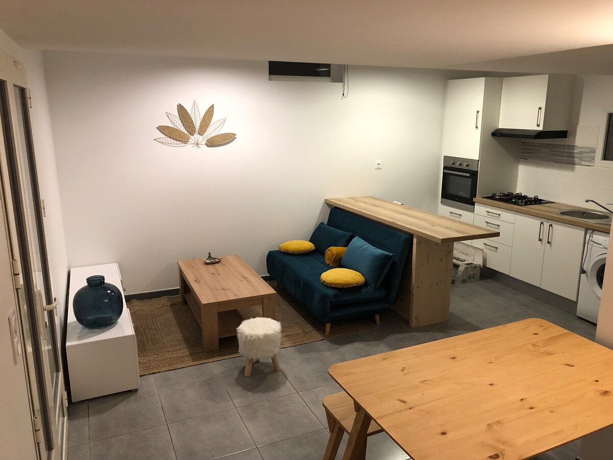 Coquet T2 օդորակիչով, որը գտնվում է 5 րոպե քայլելով դեպի Ալբիի եպիսկոպոսական քաղաքի սիրտը: Դուք կմնաք բնակելի բնակարանում, որը կազմված է ՝ - մեծ ննջասենյակ ՝ 140/190 մահճակալով, զգեստապահարանի երկտեղանի պահարանով (բավականաչափ տարածք մահճակալի համար, բայց նախատեսված չէ) - կահավորված խոհանոցիկ ՝ խոհանոցային պարագաներ, փոքր սառնարան, միկրոալիքային վառարան, սրճեփ, - հյուրասենյակ ՝ բազմոց - մահճակալով և հեռուստացույցով, - լոգասենյակ և առանձին զուգարան (սրբիչներ նախատեսված չեն), - WIFI չկա, կներեք:)