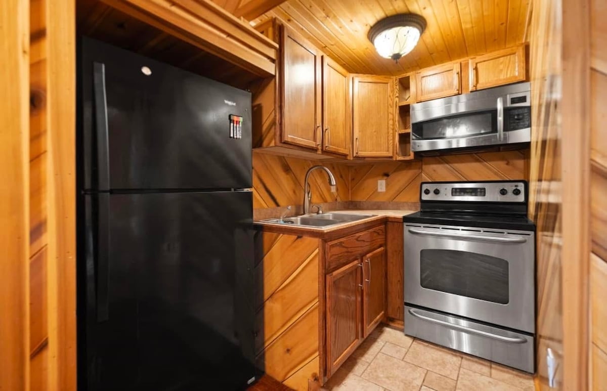 Այս նորացված քոթեջը գտնվում է Hyden - ում, KY - ում և հարմար է դեպի Սահմանային բուժքույրական համալսարան, Կենտուկի գետի մեջտեղում, ինչպես նաև բազմաթիվ տարածքներ ձիավարության արահետների և որսորդության համար: Տարածքն ունի ամբողջ նոր կահույքը ՝ լոգարանում և ննջասենյակներում շքեղ սպիտակեղենով ։ Տարածքում կա գազօջախ ՝ կոնվեկցիոն վառարանով, սառույցով սառնարան, միկրոալիքային վառարան, սպասք լվացող մեքենա, լվացքի մեքենա և չորանոց ։ Բերեք միայն ձեր ատամի խոզանակը և անձնական իրերը, մնացած ամեն ինչ նախատեսված է լեռնային հանգստի համար: