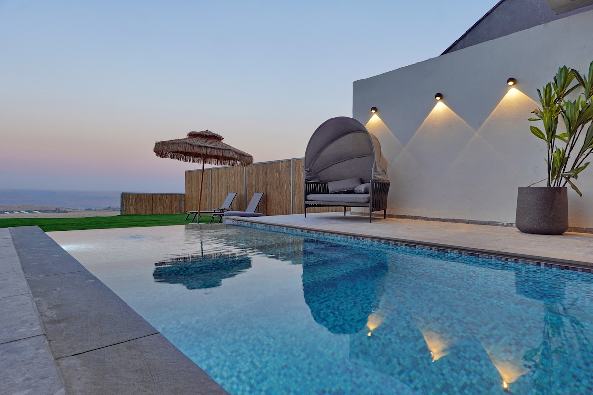 Լեռան վրա գտնվող տունն առաջարկում է անծանոթ արձակուրդային փորձառություն ։ Տունը պենտհաուս վիլլա է Էյլաթի Նահալ Շահամոն արգելոցի ծայրամասում գտնվող վայրից ։ Տան հանգստացողները վայելում են արգելոցի համայնապատկերը դեպի Կարմիր ծով ։ Տունը մտածված նախագծված է և հագեցած է առաջադեմ համակարգերով ։ Ննջասենյակները փափուկ են, խոհանոցը լիովին կահավորված է, իսկ այգին ներառում է առանձին լողավազան, ջակուզիի սպա հոսքեր, բացօթյա խոհանոց, որը ներառում է գազի մանղալ, բացօթյա ճաշասենյակ և հարմարավետ և փափկեցնող նստատեղեր ։ Վիլլայում երեկույթներն արգելված են Արգելվում է աննորմալ աղմուկը, ժամանցի արկղերի կամ նմանատիպ բարձրախոսների օգտագործումը Հյուրընկալման նվազագույն տարիքը ՝ 28 +