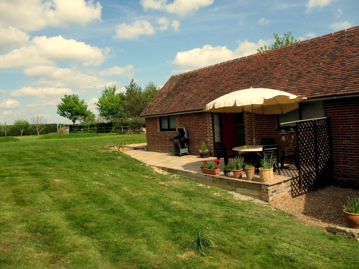 Spacious, well appointed barn built to extremely high specification with own patio and garden overlooking another established garden and fields. Designer kitchen and breakfast bar with through lounge/dining space, under floor heating and wood burning stove make this very cosy with all needs catered for. Two large en suite bedrooms, one with a double bed and one with two single beds. Ideal for walkers and cyclists as we abut the Downs Link bridleway/cycle track. Unsuitable for children under 10.
