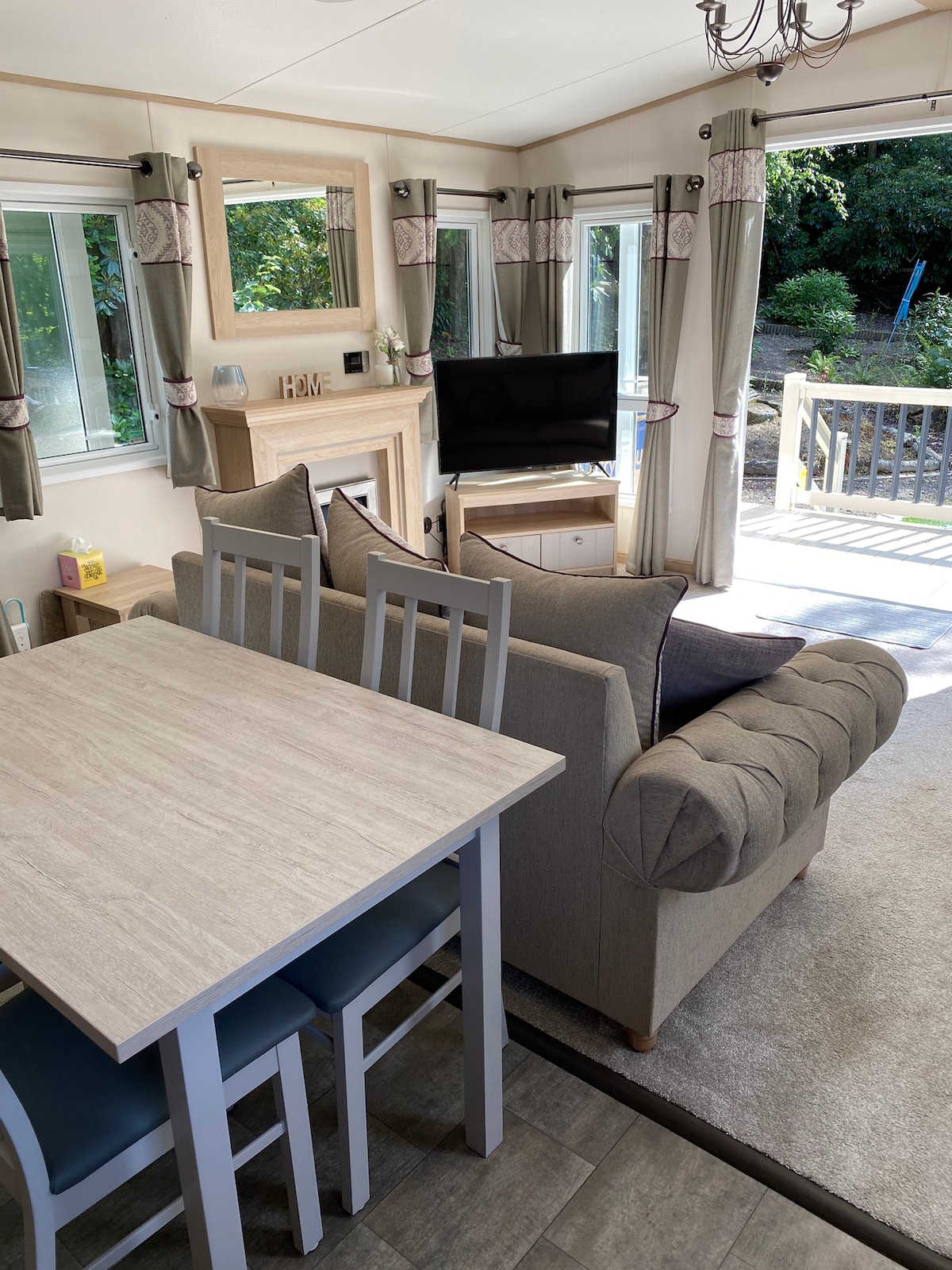 A home away from home with everything you could need for a short or long break. A luxury holiday home on a family friendly holiday park set in beautiful woodland area. Gas central heating, double-glazed, decked terrace, private woodland garden, fully equipped kitchen and parking for 2 cars. Playground, Heated outdoor swimming pool (small charge May - Sept, £1 per person per day), gym and clubhouse to use as well as the beautiful woodland to explore and ducks to feed.