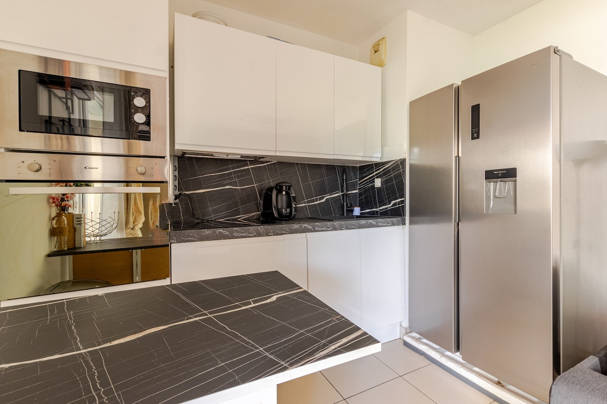 Welcome to the world of this exceptional studio. Immerse yourself in an experience that merges a discreet sleeping area with refined relaxation, all while discovering a cinema projection from your intimate haven. The subtleties of travertine awaken your senses, creating an atmosphere reminiscent of a luxurious hotel. The balneo, provides unparalleled relaxation. Explore this suite, where every detail is committed to offering well-being and elegance, inviting you to a unique experience.