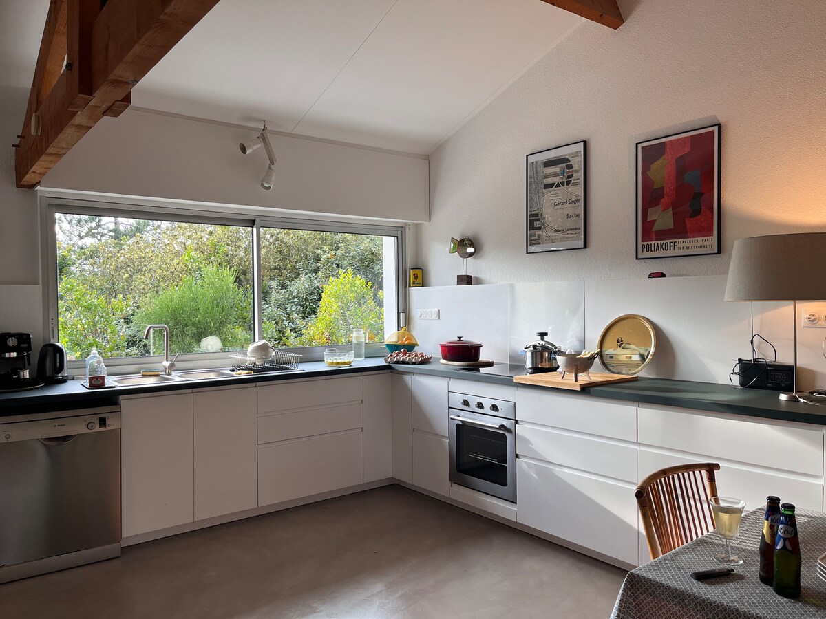 Առաջին գծի բնակարան Բասին դ'Արկաշոնում՝ ծովի և անտառի միջև։ Լե Ժակե, Կապ Ֆերե թերակղզի։ 2013 թվականի փայտե տան 1-ին հարկում, մասնավոր ճանապարհի վրա։ Ուղիղ մուտք դեպի լողափ ։ Հարմարավետ, օդորակված, 60 մ²։ 1 ննջասենյակ՝ 160 × 203 սմ մահճակալով և բնական լատեքսից ներքնակով, ցնցուղասենյակ, զուգարան, լվացքասենյակ՝ լվացքի մեքենայով, մանկական պարագաներով, չորանոցով, մեծ հյուրասենյակ-խոհանոց՝ 160 × 203 սմ մահճակալ-զգեստապահարանով։ Խոհանոցը հագեցած է էլեկտրական ջեռոցով, ինդուկցիոն վառարանով, միկրոալիքային վառարանով, սպասք լվացող մեքենայով և սառնարանով։ TNT WiFi։
