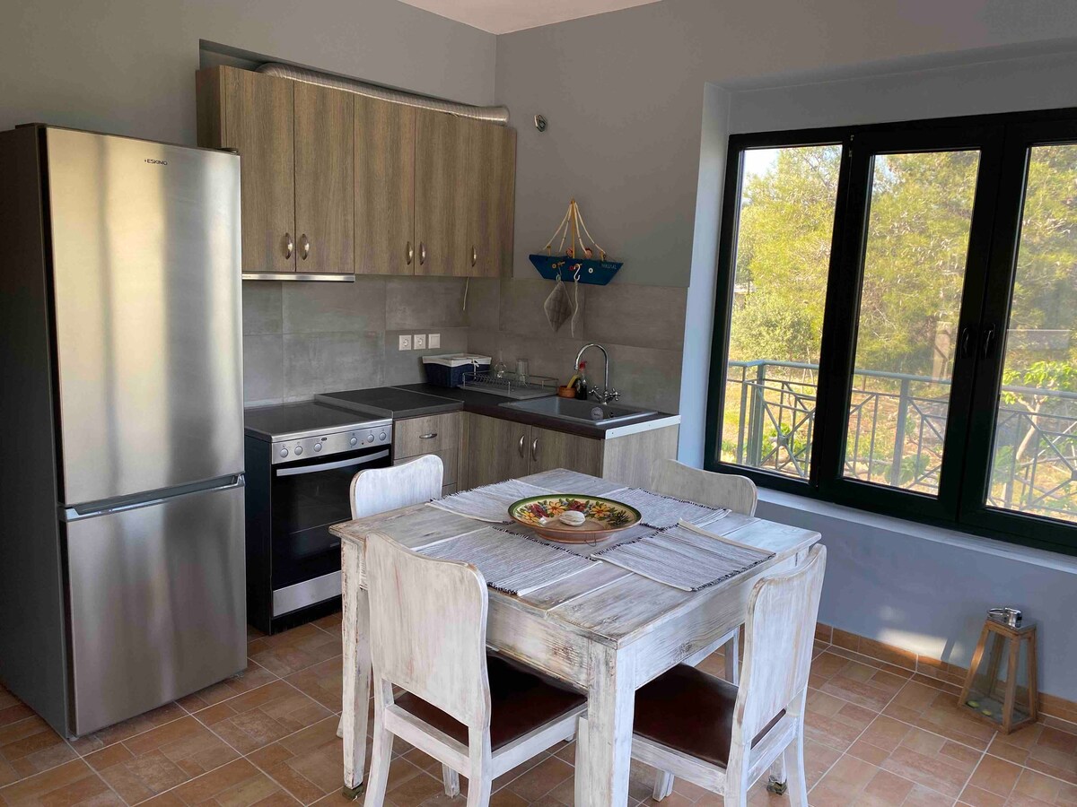 Մեր բնակարանը հանգիստ և հարմարավետ առաջին հարկի տուն է Էվիա նահանգի Ագիոյ Ապոստոլոյ քաղաքում ։ Այն 82 ք.մ. է ՝ բուխարիով, ջեռուցմամբ և A/C - ով ։ Այն հյուրընկալում է 5 -6 հյուրի ՝ 2 երկտեղանի ննջասենյակով, լիովին կահավորված խոհանոցով, ընդարձակ հյուրասենյակով ՝ բազմոցով և օրորոցով (ըստ պահանջի) և 1 լոգասենյակով ։ Այն ունի մեծ բակ և առանձին կայանատեղի ։ Ծովից և գյուղի կենտրոնից մեքենայով ընդամենը 2 րոպե հեռավորության վրա. իդեալական է ամբողջ տարվա հանգստի համար: