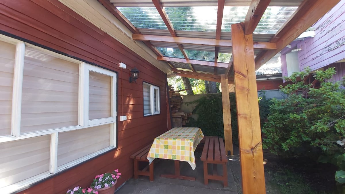 IG @casavacacionalpanguipulli Acogedora cabaña en el sur de Chile, ideal para programar tus días de aventura y descanso. Situada a 4 km del centro urbano de Panguipulli, Región de Los Ríos. En una parcela totalmente independiente y rodeada de frondosa naturaleza. Un lugar amplio, cómodo y privado para tres personas. ¡La tranquilidad de este lugar te va a encantar!