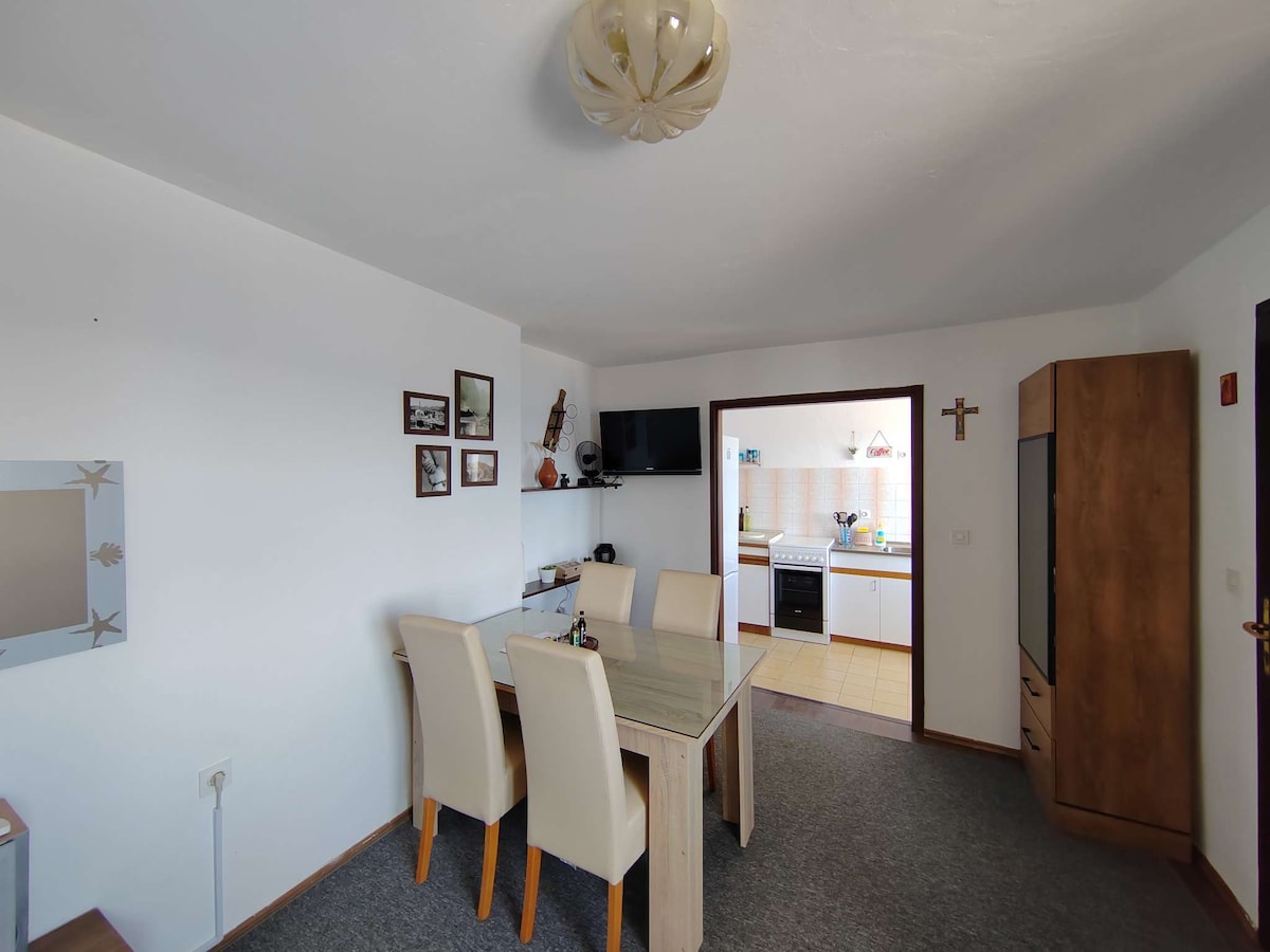 Այս գեղեցիկ բնակարանը գտնվում է ծովից ընդամենը մի քանի սանտիմետր հեռավորության վրա ՝ Զադարի կենտրոնին մոտ գտնվող յուրահատուկ վայրում ։ Այն ունի երկու ննջասենյակ և շատ հարմարավետ հյուրասենյակ/ճաշասենյակ, որտեղից բացվում է հիանալի տեսարան դեպի կղզիներ ։