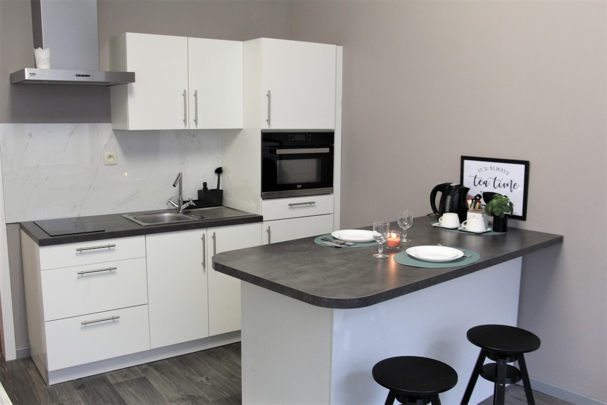 🌵 Բարի գալուստ Cactus J&J՝ ձեր քաղաքային օազիսը Լիեժի սրտում։ Լուսավոր բնակարան, որը գտնվում է քաղաքի կենտրոնում՝ Մոզ գետի տեսարանով 🌅 🛋️ Տարածքը • 2 ննջասենյակ (զուգընկերների, ընկերների կամ ընտանիքների համար) • բաց հատակագծով հյուրասենյակ • Կահավորված խոհանոցը • պատշգամբը • ցնցուղարան 📍 Տեղադրություն • Լիեժի կենտրոն • Մոտակայքում կան ռեստորաններ, խանութներ և տրանսպորտային միջոցներ ⭐ + • ինքնուրույն ժամանումը • Մանրակրկիտ պատրաստված կացարան Անհամբեր սպասում ենք ձեզ հյուրընկալելուն 🌵