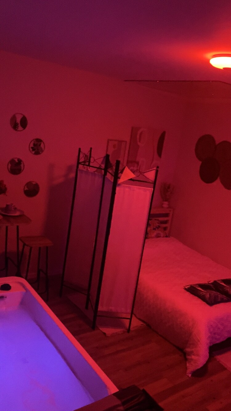 Venez profiter le temps d'une nuit ou d'un weekend, d'un spa privatif ! Vous serez séduit par ce logement de charme de plus de 40m2, entièrement neuf. Il est composé d'un espace salon avec baignoire balneo et sauna, d'une cuisine équipée, d'une chambre avec lit Queen size et écran plat (Netflix, prime vidéo), d'une salle de bain avec douche italienne et de WC séparé. Un joli espace extérieur avec terrasse vous attend.