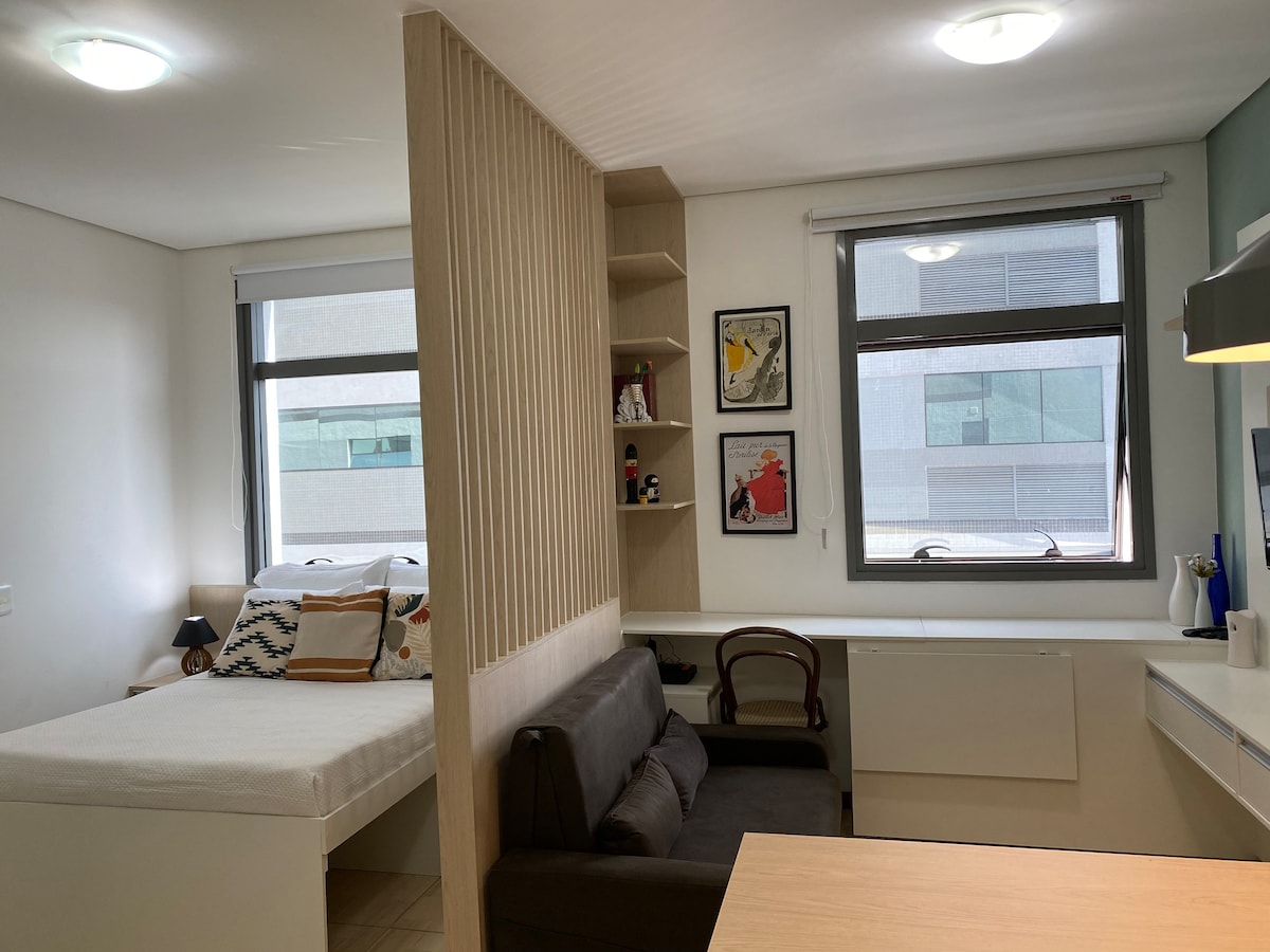 Վայելեք հարմարավետ հանգիստ բոլորովին նոր ստուդիայում, որը գտնվում է ժամանակակից շենքում ՝ լողավազանով, մարզասրահով, համագործակցային տարածքով, բացօթյա բուխարիով և համայնապատկերային տեսարաններով տանիքի տեռասներով ։ Գտնվում է Բատելում ՝ Կուրիտիբայի լավագույն թաղամասում, որը շրջապատված է ռեստորաններով, սրճարաններով, մթերային խանութներով և քաղաքի լավագույն առևտրի կենտրոններից մեկից ընդամենը մի քանի քայլ հեռավորության վրա ։ Այն ամենը, ինչ ձեզ հարկավոր է, քայլելու հեռավորության վրա է ։ Կատարյալ է հանգստանալու, աշխատելու կամ քաղաքը ոճով և հարմարավետությամբ ուսումնասիրելու համար ։ Ամրագրեք ձեր Կուրիտիբայի տունը հիմա: