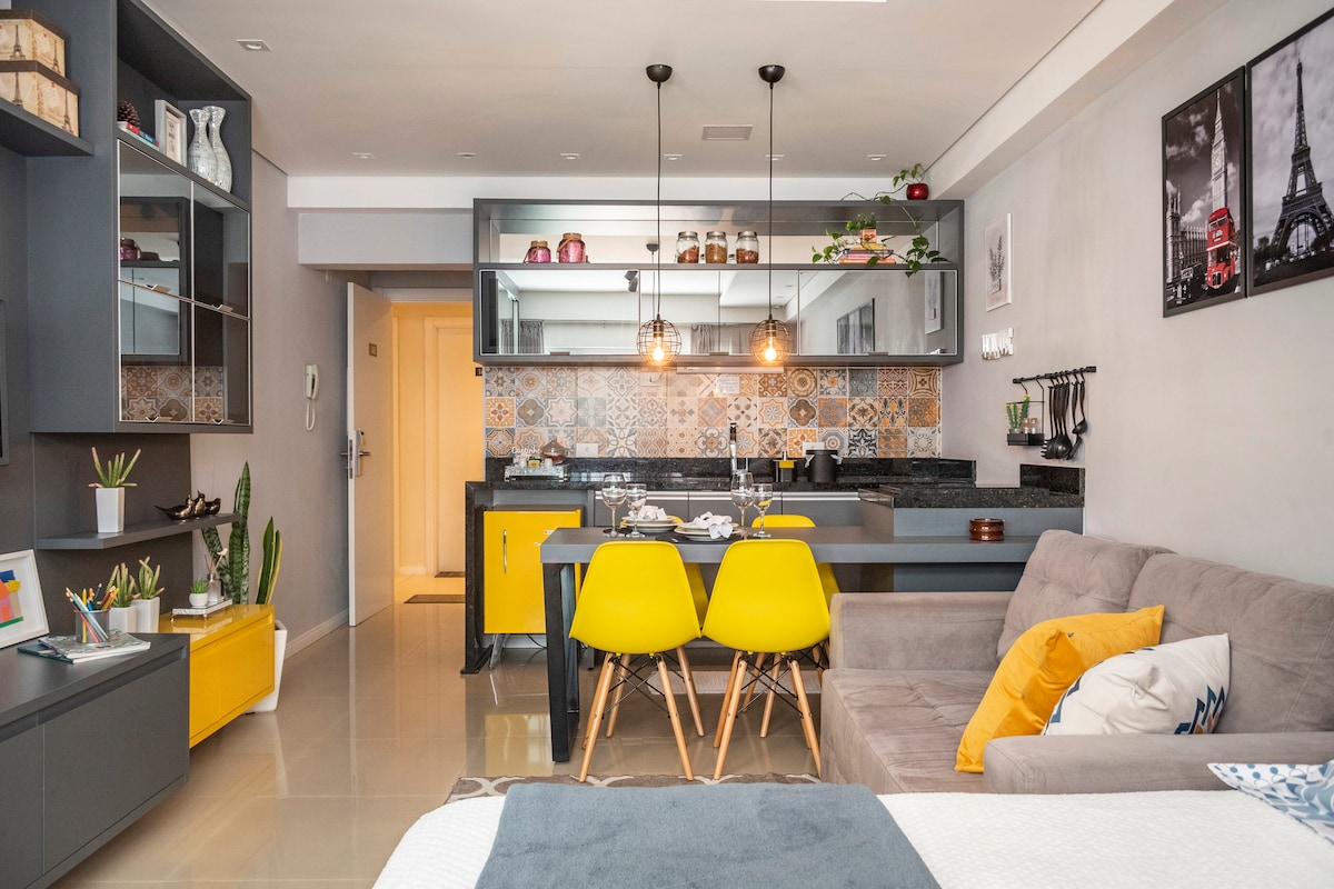 Welcome!! Moderno, prático e confortável. Este ambiente foi idealizado para proporcionar o bem-estar das pessoas que assim como eu, adoram viajar e ao mesmo tempo se sentir em casa. Super bem localizado, estamos próximos a shoppings, mercados, hospitais, confeitarias, bancos, farmácias e o prédio possui uma infraestrutura perfeita. Edifício com Porte-Cochère, portaria 24 horas e Cafetería