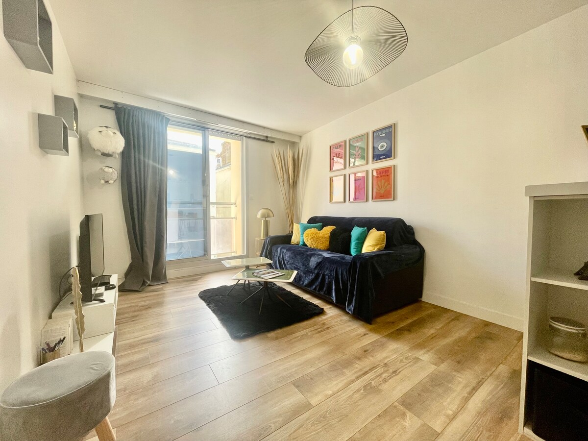 The advantages of this very bright 3*** apartment of 35 m²: - ideally located in the heart of the typical Quartier du Passage, 1 minute from the beach! - new bedding in 2024 Queen Size 160x200! - 1 separate bedroom - sheets and towels included - no additional or hidden costs to add: many of our facilities are available to you free of charge (travel cot, high chairs, beach toys, market carts, etc.) - baggage drop-off possible from 2 p.m. (see details in the announcement)