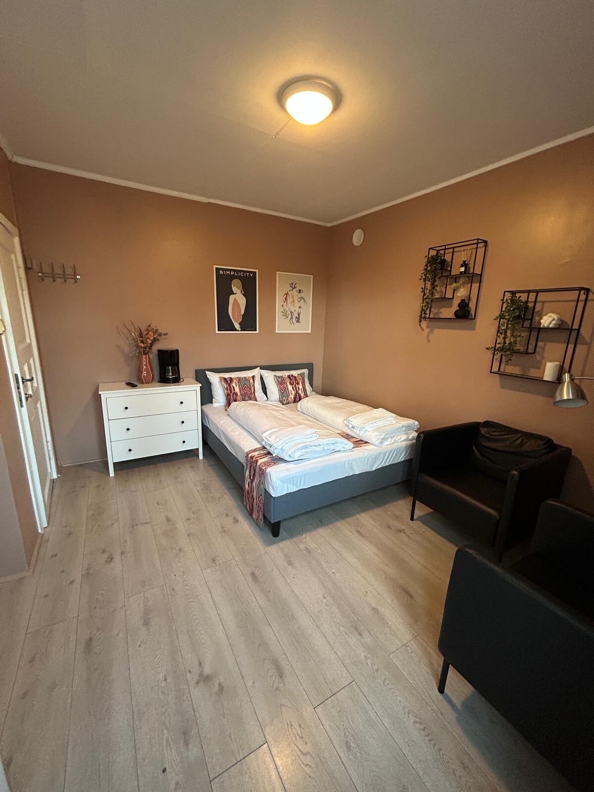 Friendly library/ TV room with private entrance. Hundreds of books and dvds, double bed and a pleasant view to the garden. Room has a refrigerator, coffee/tea, electric kettle and microwave. There are plates and some cutlery. Separate bathroom redone oct. 2025 with washer/ drier Located 10 min. walk from the highstreet. 5 minutes to Maihaugen 10 minutes to groceryshop 15 minutes to Olympic skijump Breakfast at Scandic Hotel around the corner available . Swimmingpool and SPA at Scandic