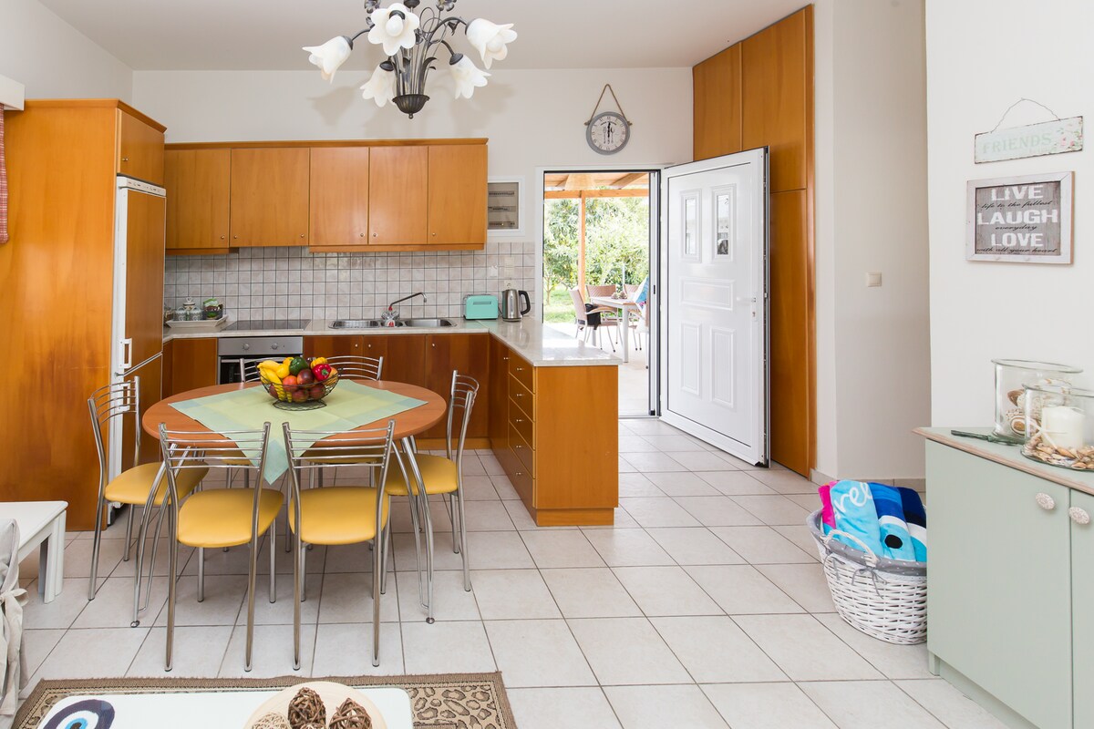 Խաղաղությունը և տեսարանը խոստանում են առատաձեռնորեն պարգևել ձեզ այն հանգստությունը, որը փնտրում եք ձեր արձակուրդի ընթացքում, և հիասքանչ տեսարան դեպի անվերջ կապույտը, որը ձգվում է ձեր առջև: Լողափից և խանութներից ընդամենը 4 րոպե հեռավորության վրա գտնվող հանգիստ տուն է ։Իդեալական է բազմազավակ ընտանիքների համար, քանի որ ունի 2 ննջասենյակ ։ Այն լիովին հագեցած է բոլոր էլեկտրական սարքերով և ունի լրացուցիչ սարքեր, ինչպիսիք են վարսահարդարիչը, տոստերը, տոստերը, արդուկը: