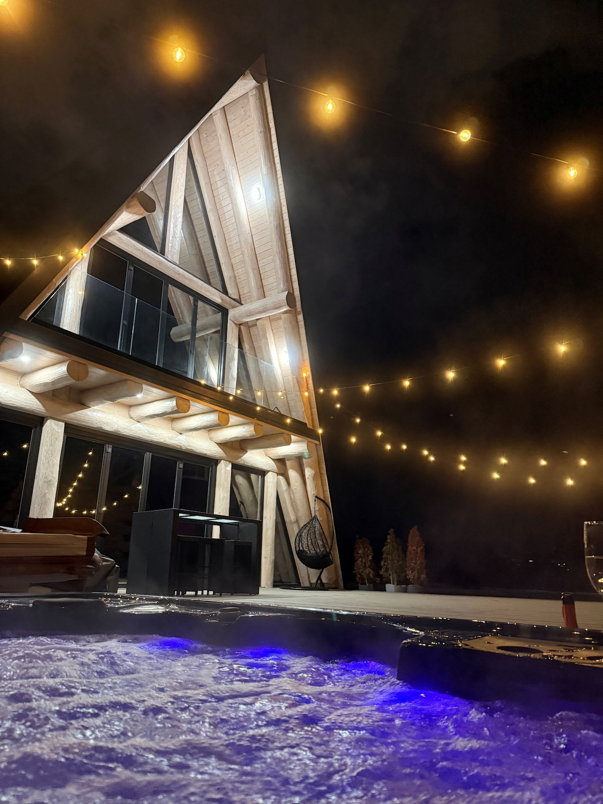 Նորաձև եռանկյունաձև տնակ՝ ջակուզիով լճի ափին