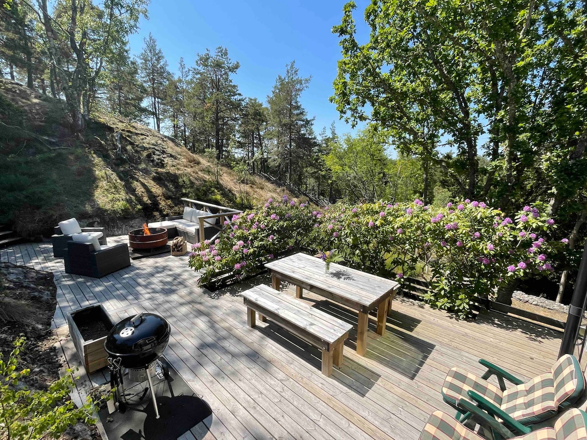 Paradis på Mörkö! Huset har en välkomnande atmosfär och ligger högt och avskilt. Denna hisnande vackra havstomt bjuder in till total avkoppling. 50-tals hus med designinredning och havsutsikt. Egen brygga. Motorbåt (50hk) finns för uthyrning. Beläget endast 50 minuter från Stockholms centrum når du detta idylliska hus med bil ända fram. Den öppna planlösningen skapar en ljus och luftig atmosfär, med generösa fönster mot havet. Den stora solfyllda altanen omringar hela huset. Öppen spis