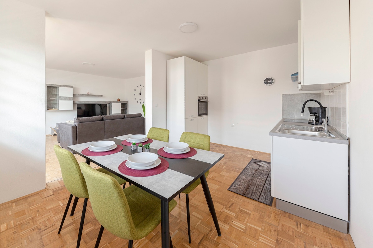My apartment is situated in a green and quiet residential area of Ljubljana 7 km from city center and 500m from main ring road - ideal for exploring Slovenia by car. It offers a very relaxing holiday staying suitable for 3 - 5 adults or family with children. Its own entrance from the garden enables privacy, but with complete support of the host when needed. This floor apartment of 52 m2 and a terrace of 25 m2 with views of the garden, meadow and trees is a perfect place to relax and enjoy.