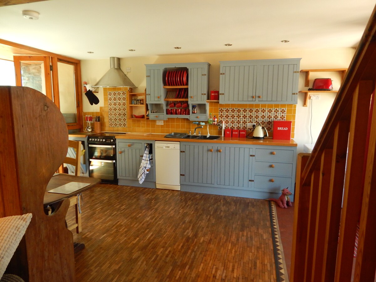 Գեղեցիկ գոմ դարձի մոտ բազայի Mynydd Troed (Foot Mountain) է Brecon Beacons ազգային պարկի. 1.5 մղոն դեպի Llangorse լիճ, 10 մղոն դեպի Hay - on - Wye. Մուտք գործեք կաղնու շրջանակված շքամուտքով դեպի մեծ բաց հատակագիծ ՝ թողնելով տարածքը լավ կահավորված խոհանոցով, և հարմարավետ լաունջ տարածք ՝ փայտի վառվող վառարանով և մեծ հեռուստացույցով ։ Ներքևում կա նաև խոնավ սենյակ և կոնսերվատորիա ։ Վերևում կան 2 լավ չափի երկտեղանոց սենյակներ, լոգասենյակ և պատշգամբ: