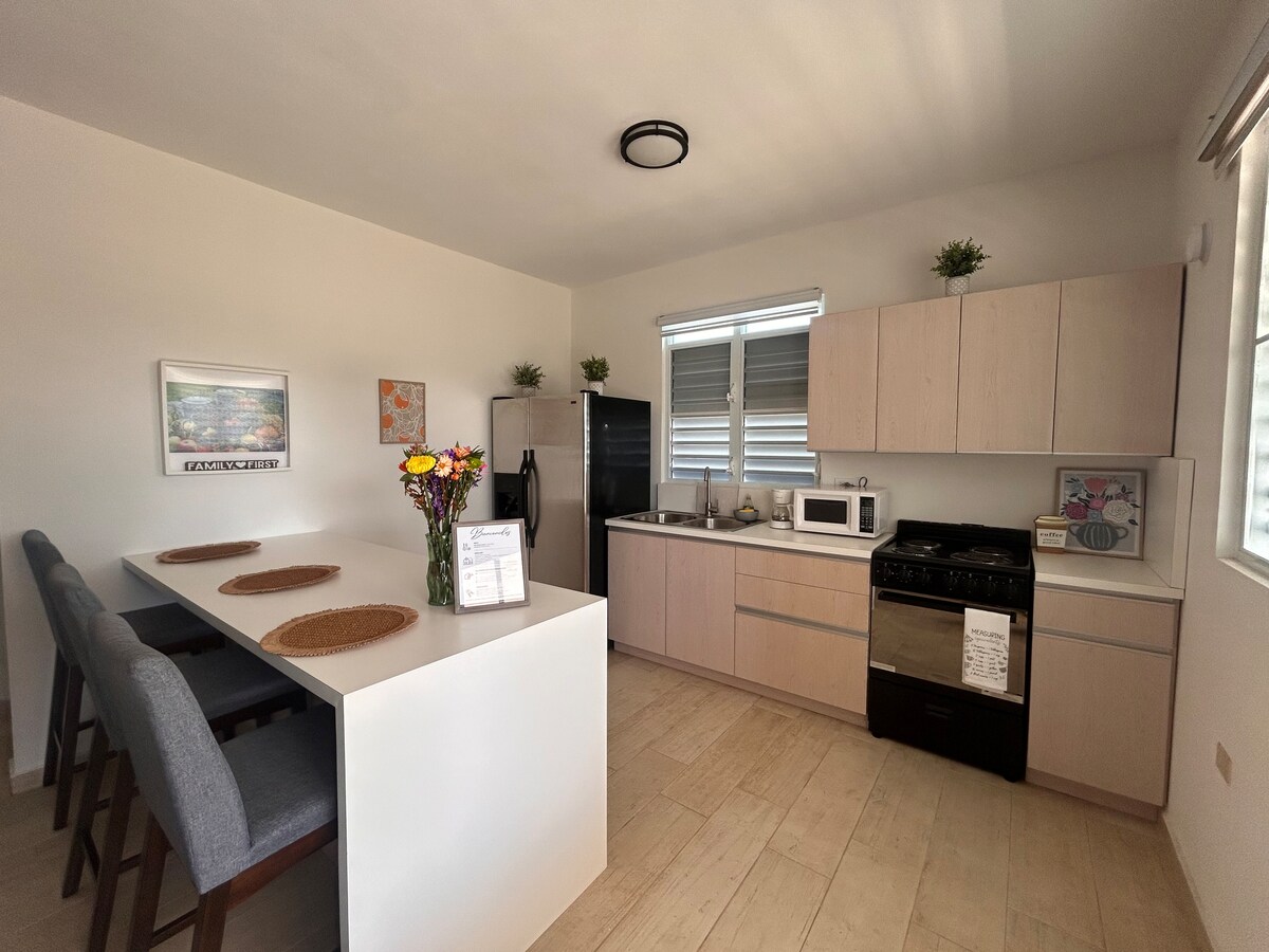 This apartment offers a full kitchen, living room, dining, and kitchen area. Has 2 king size beds and 1 full bathroom. It is perfect for couples or a group of friends up to 4 people looking to stay in a more comfortable and complete place to stay with all the commodities. **To access the apartment guests most must go downstairs; photos included. **This space is one of 3 spaces with independent access and has parking for one car.