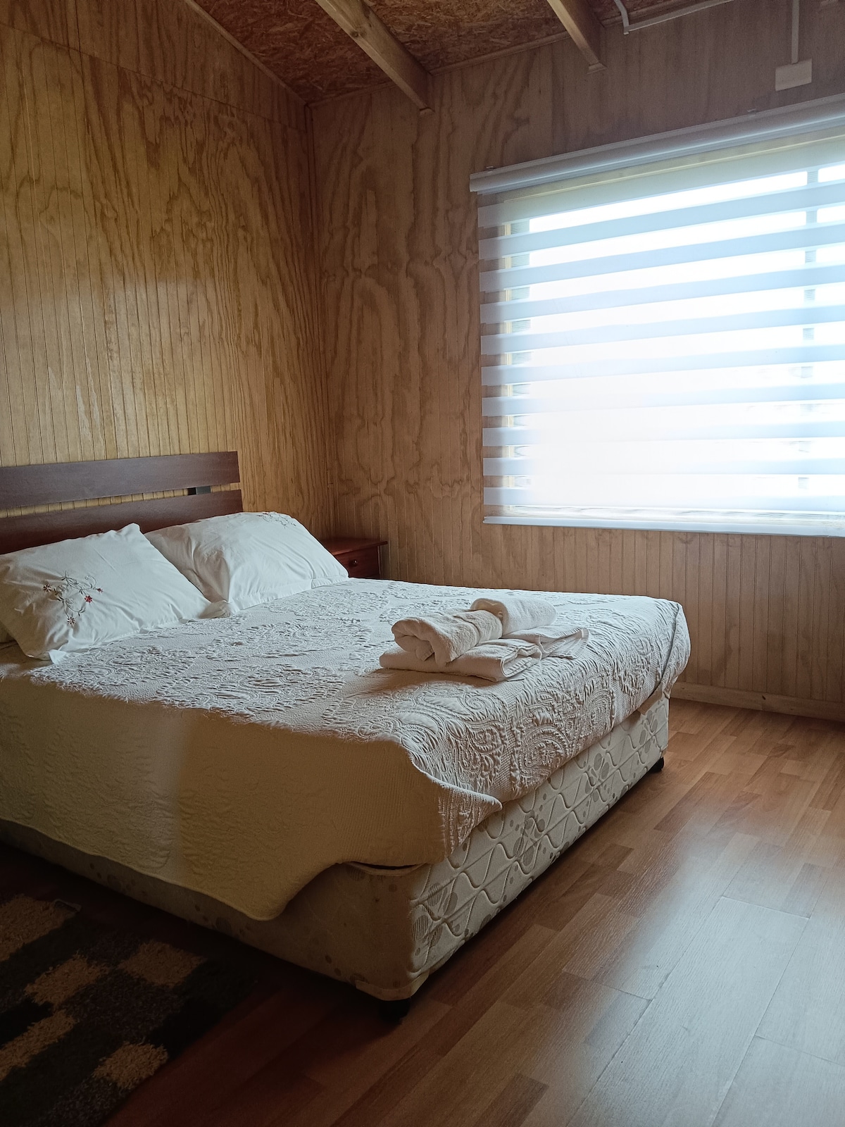 Ubicados a solo 30 metros del Lago Llanquihue y a solo 3 cuadras del centro de la ciudad, en un entorno tranquilo. Nuestras habitaciones matrimoniales son modernas y bien equipadas, con baño privado, cama confortable, cafetera y escritorio, ideales para tu descanso o trabajo. Ofrecemos un espacio acogedor, cercano a todos los atractivos de la región, para que disfrutes de una estancia cómoda y relajante. Habitación ubicada en un segundo piso, acceso por escalera interna.
