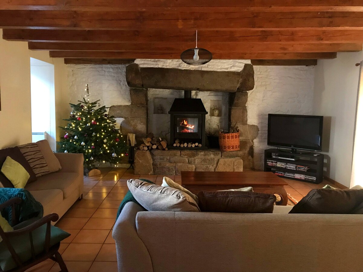 Բրետոնական քարե տուն ՝ առաջին հարկում ՝ ճաշասենյակ, խոհանոց, հյուրասենյակ ՝ փայտի վառարանով և զուգարանակոնքով ցնցուղի սենյակ ։ 1 - ին հարկում ՝ 2 ննջասենյակ ՝ 1 երկտեղանի մահճակալով (140x190) և 1 ՝ երկու մեկտեղանի մահճակալով (90x190 )։ Գինը տարբեր է ՝ ըստ հյուրերի թվի ։ Խնդրում ենք նշել մարդկանց ճիշտ թիվը ։ Գինը սահմանելու համար հաշվի եմ առել ձեր հյուրերի վճարների և զբոսաշրջային հարկի գումարը ։ Տունը չունի դրսի տարածք, բայց գտնվում է GR երթուղու անաղմուկ փակուղում ։