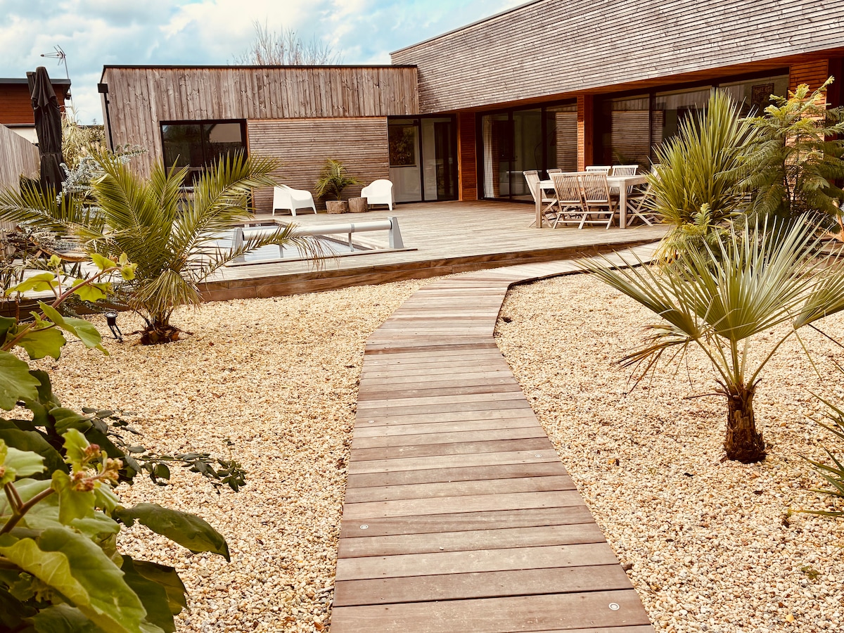150 մ քայլք դեպի լողափ վերջերս շրջված ժամանակակից տուն, համայնապատկերային տեսարան Լոկկիրեկ ծովածոցի ֆոնին: Ունի կահավորված բաց խոհանոց (ջեռոց, ամանալվաց մեքենա, միկրոալիքային վառարան, սառնարան, սառցարանի բարձր սեղան 6 հատ + ճաշասենյակի սեղան, հյուրասենյակ, հեռուստացույց, զուգարան 40 մ2 դեպի հարավ ՝ դեպի կտուր + պատշգամբից օգտվելու հնարավորություն ։ Garden 600m2 + pétanque court garden. Առաջին հարկ 3 ննջասենյակ, այդ թվում ՝ 2 ծովային տեսարան ՝ մահճակալ 160/200 գլխավոր ննջասենյակ, մահճակալ 160/200 և մահճակալ 140/190, զգեստապահարան, 2 իտալական ցնցուղի լոգասենյակ, զուգարան ։