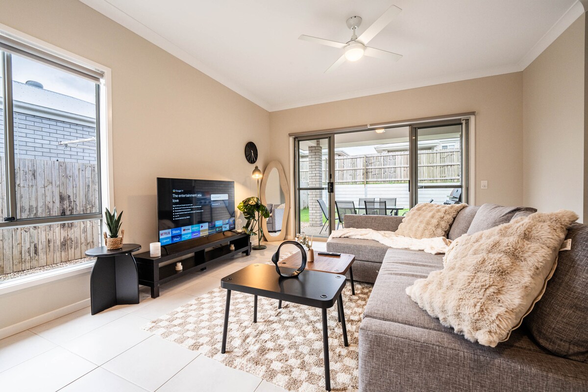 Newly built in 2023, this duplex home has a full kitchen for cooking/entertaining plus a full projector TV for watching movies sport or anything! walk in pantry with tea, coffee and breakfast basics, laundry and a lovely Alfresco area. master bedroom with ensuite, walk in robe and wall mounted smart tv. Just a few minutes to M1 motorway or train station, this location is perfect for access to Gold Coast or Brisbane
