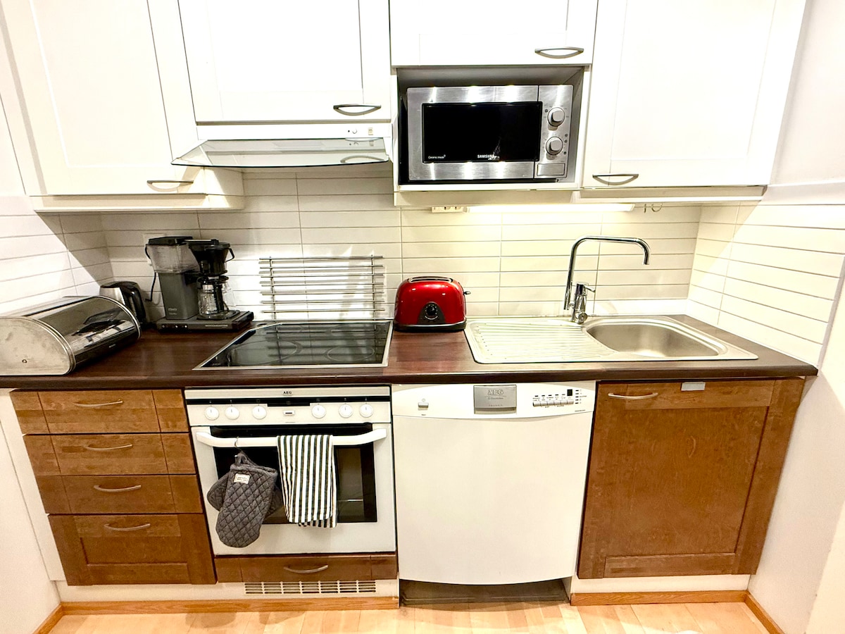 Մնացեք հոյակապ վայրում ՝ ամենացանկալի հյուրանոցների, ռեստորանների, կոմերցիոն տարածքների կողքին, բնակարանում հարմարավետ հարմարություններով: Սուրբ Ջորջ 100մ, Stockman 350m, Ekberg 100m, Esplanad 200m. Այս մեկ ննջասենյակի բնակարանն առավել հարմար է Հելսինկիին ուսումնասիրող կամ բիզնես նպատակներով այցելող 1 անձի համար ։ Հարմարավետ կարգավորելի մահճակալ, օդի կենտրոնական օդափոխություն, հատակի ջեռուցում ։ Սառնարան, սառցարան, ամանալվաց մեքենա, ջեռոց, միկրոալիքային վառարան, գազօջախ, լվացքի մեքենա և չորանոց ։ Շենքում կա նաև հյուրերի համար նախատեսված մարզասրահ ։