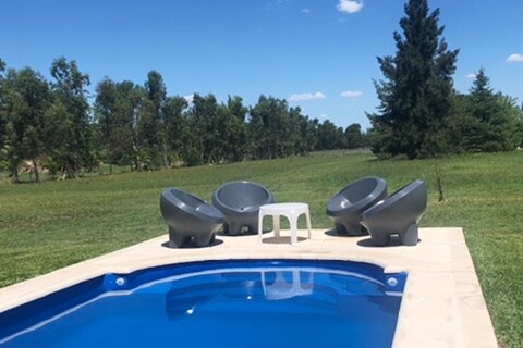 Հանգստացեք այս հանգիստ, տաք տարածքում ։ Գտնվում է 500մ2 սեփականությունում, որը թույլ է տալիս վայելել բնության ձայնը քաղաքի կենտրոնից մի քանի րոպե հեռավորության վրա ։ Իդեալական է զույգերի կամ երեք հոգանոց ընտանիքի համար: Տեղակայված է գյուղական և միջերկրածովյան ոճով ՝ ապահովելով հարմարավետություն ։ Այն ունի կահավորված խոհանոց, ճաշասենյակ, հյուրասենյակ ՝ սիլոնով(փափուկ ափսե), գլխավոր ննջասենյակ ՝ երկտեղանի մահճակալով, անկողնային պարագաներ, գրիլ և կիսափակ պատկերասրահ ։ Amplio Parque y Pileta