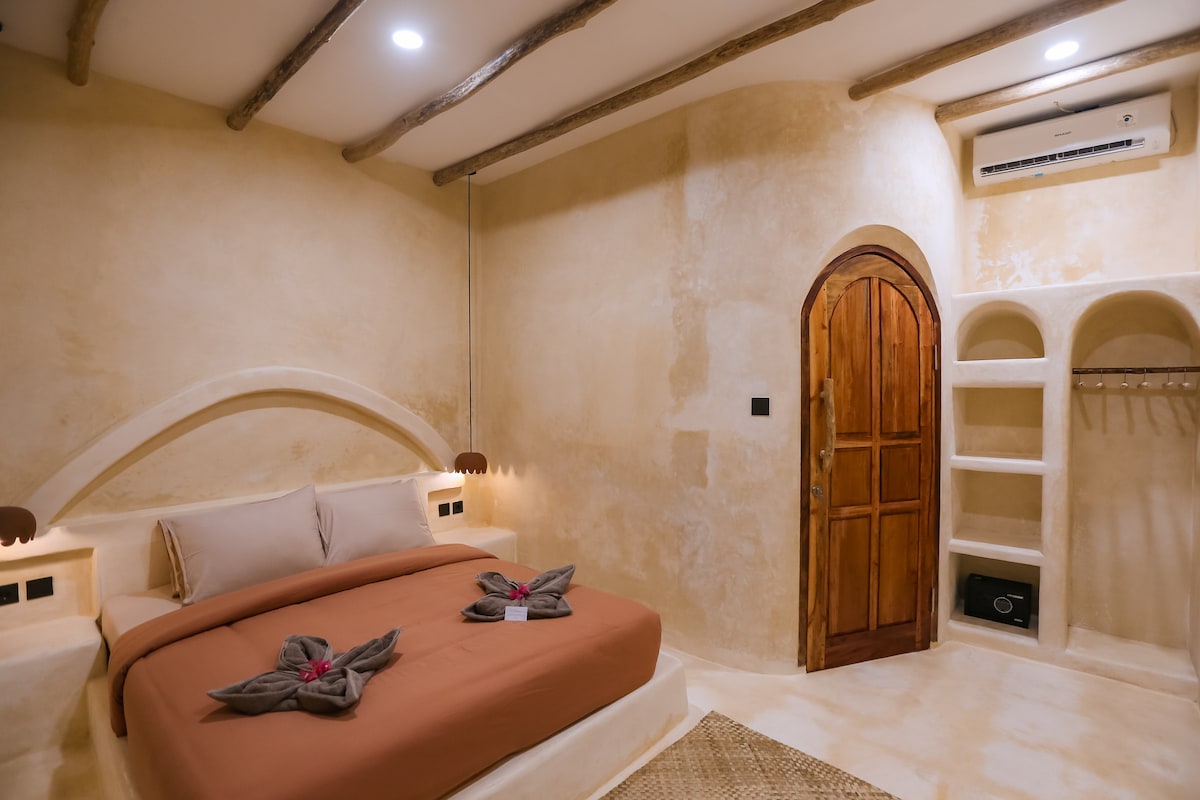 Our newest room the Jungle Hut is spacious, comfortable and equipped with air-conditioning, perfect for couples, families or small groups looking for a relaxing getaway. While it can accommodate up to five persons, it offers plenty of space and privacy for two. The room features a terrace with a chill-out sofa and hammock, as well as a small garden where you can hear the birds sing. Please note that the room doesn’t have a sea view, but it’s just a short walk to the beach.