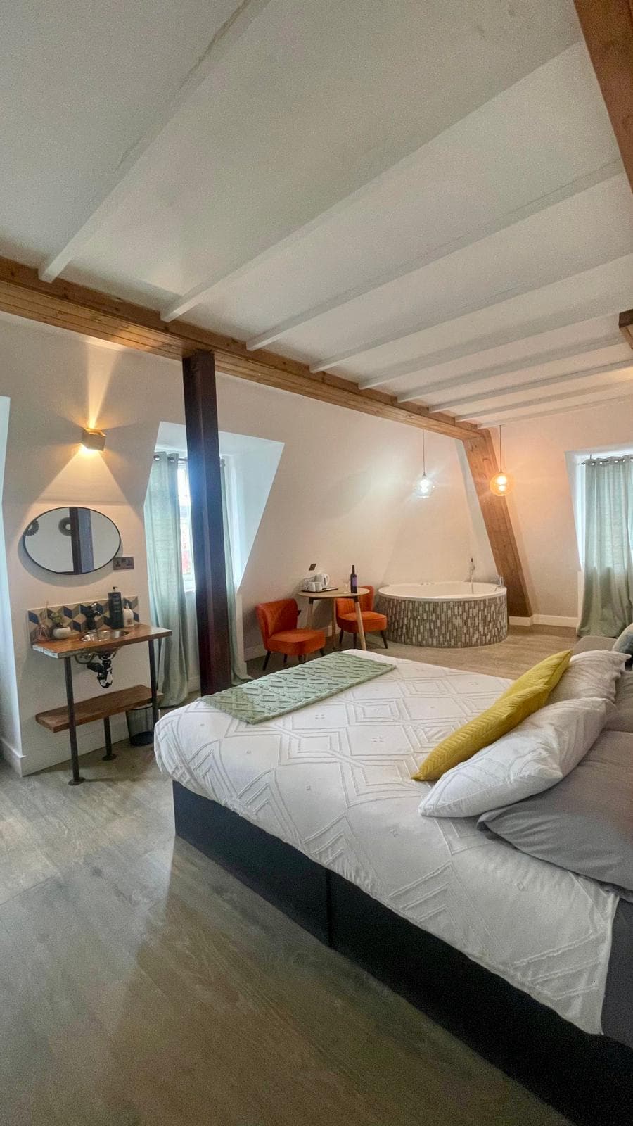 Step into the grande studio where extra space and thoughtful design make it the perfect choice for longer stays unwind on a luxurious king size bed and enjoy the convenience of a kitchenette with a dishwasher washer dryer and microwave start your mornings with complimentary coffee and a croissant and make use of the great workspace arm chairs and fast free WiFi for a truly comfortable and stylish experience.