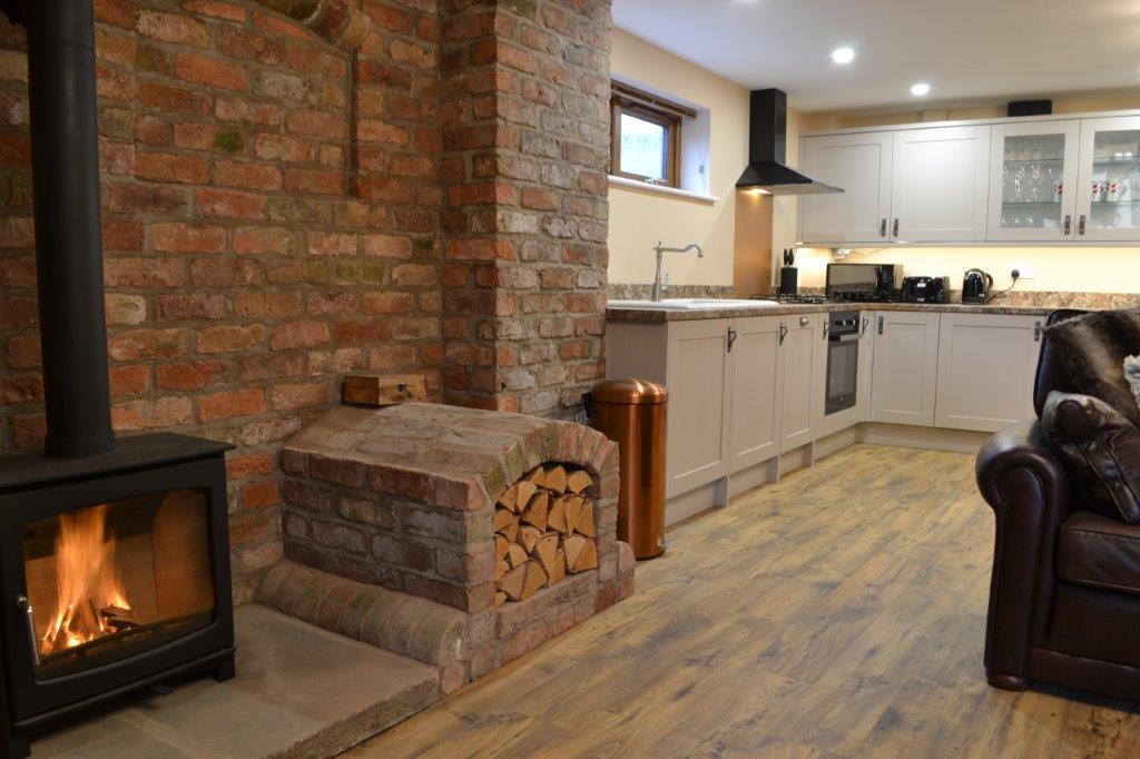Recently converted, the Owlery is the perfect self-catered rural escape for couples. With its double height vaulted ceiling and full height double aspect windows the open plan kitchen living diner offers a light and airy space to unwind and enjoy the view of surrounding fields. The bedroom has a Kingsize bed, Egyptian cotton sheets and En-Suite shower room. The Bathroom offers complimentary Bramley products and cotton bathrobes. Both areas are underfloor heated. There is a private garden.