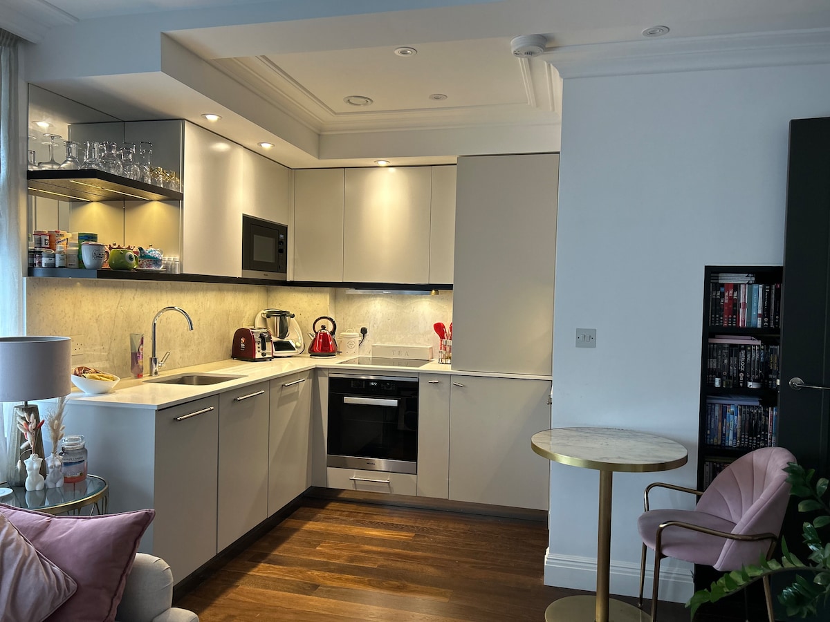 Գեղեցիկ, ժամանակակից ստուդիա Պադինգտոնում՝ Կենտրոնական Լոնդոնից ընդամենը մի քանի րոպե հեռավորության վրա։ Տեսեք աշխարհահռչակ տեսարժան վայրերը և վայրերը, որոնք շատ մոտ են։ Մետրոն ՝ – 10 րոպե քայլելու հեռավորության վրա է Վեսթբորն Պարկ կայարանից – Մեյդա Վեյլ կայարանից 12 րոպե քայլելու հեռավորության վրա – Ռոյալ Օուք կայարանից 15 րոպե քայլելու հեռավորության վրա Ստուդիայի առանձնահատկությունները ՝ • 🛋️ Փայլուն մարմարե հատակներ և նորաձև դեկոր • 💡 LED տրամադրող լուսավորություն հարմարավետ գիշերների համար • 🚿 Սև սալիկապատ լյուքս մակարդակի ցնցուղարան • 🛜 Սմարթ հեռուստացույց և գերարագ Wi-Fi • 🍵 Սրճարաններ, խանութներ և մետրո