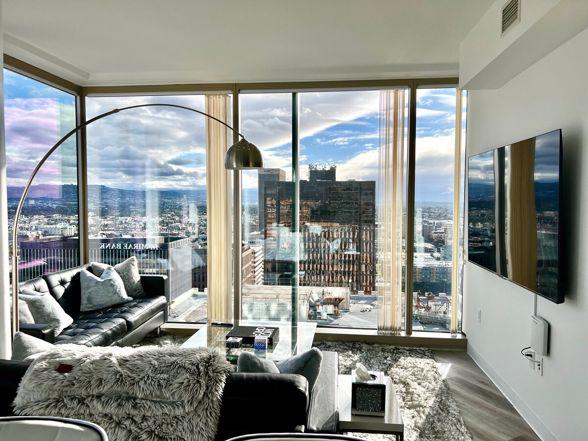 Experience Downtown Los Angeles from the top of its skyline. Whether you're in town for a convention, show, sporting event or weekend away, you'll love the luxurious amenities and incredible view this listing has to offer. With absolutely stunning views of downtown, watch the organized chaos from high above in our tranquil condo.