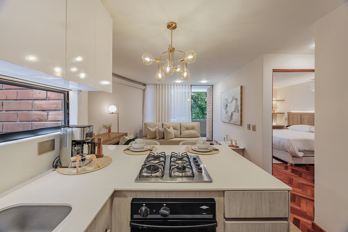 Պրեմիում դասի բնակարան Էլ Պոբլադոյի 21-րդ հարկում՝ մասնավոր ջակուզիով, հորիզոնի և լեռների համայնապատկերով։ Հանգստացեք պատշգամբում, վայելեք օդորակիչով հարմարավետությունը, աշխատեք գերարագ Wi-Fi-ի և հատուկ աշխատանքային տարածքի շնորհիվ և վայելեք 3 HD TV՝ Netflix-ով, լիովին կահավորված խոհանոցով, լվացքի մեքենայով/չորացնողով և թեյի/սուրճի պատրաստման անկյունով։ Օգտվեք սպա կենտրոնից, մարզասրահից, բաղնիքից, լողավազանից, ռեստորանից և սրճարանից։ Մի փոքր հեռու է Parques Lleras և Provenza առևտրի կենտրոնները՝ շքեղության, ոճի և հարմարավետության լավագույն վայրերը։