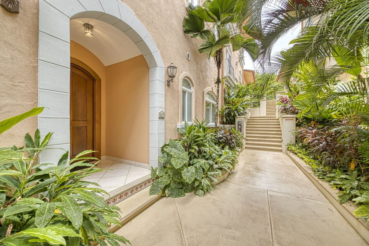 Հանգստացեք այս ընտանիքի համար հարմար 2 սենյականոց հանգստավայրում, որը գտնվում է շուրջօրյա անվտանգության ծառայությամբ, տեսախցիկներով, հանգիստ լողավազաններով և լեռնային տեսարաններով անվտանգ, ցանկապատված համայնքում։ Վայելեք օդորակիչ, 250 Մբիթ/վ արագությամբ Wi-Fi՝ մարտկոցի 3 ժամ տևողությամբ պահեստային սնուցմամբ, իսպանական հեռուստատեսություն և ռոբոտ-փոշեկուլ։ Լիովին կահավորված է մասնավոր պատշգամբով, մոտակայքում կա շուրջօրյա խանութ և տեղական գազավորված ըմպելիքներ։ Uber-ի արագ ուղևորություններով կարելի է հասնել քաղաքի կենտրոն և լողափ։ Այն նախագծել է Jacó Walk-ի հեղինակը։ Հիացեք ճարտարապետական շքեղ մանրամասներով։ Մենք համագործակցում ենք լիցենզավորված, ապահովագրված տրանսպորտային և տուրիստական ընկերությունների հետ։