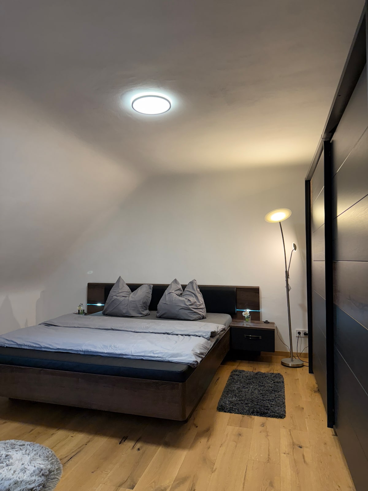 Welcome to the cozy guest room in our lovingly restored farmhouse. The accommodation can accommodate up to 4 people and impresses with its charming country house flair. Divided into a living and sleeping area with a comfortable sofa bed, a double bed and a modern bathroom with a floor-to-ceiling shower. The ideal location invites you to take trips to the Saar loop, Trier and the reservoir. Start right outside the door to the award-winning hiking and cycling trails! We look forward to see you