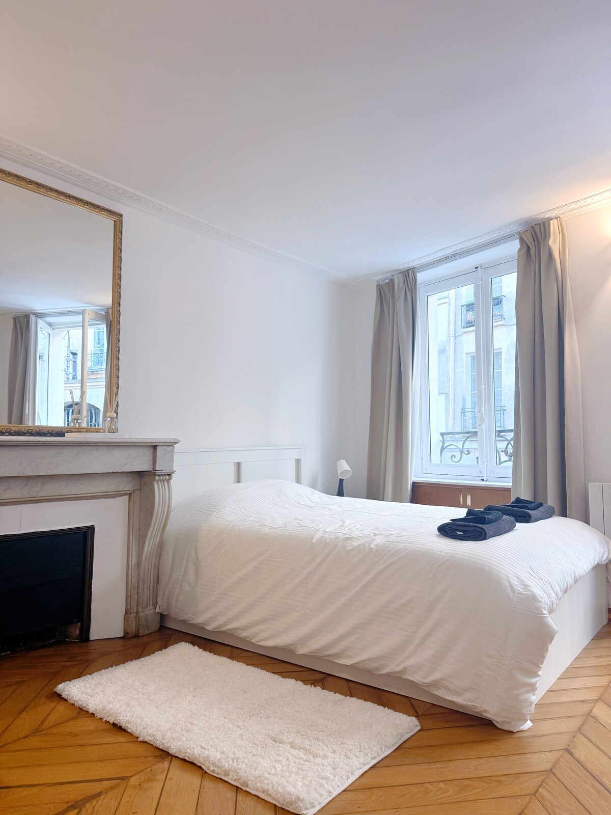 Boasting herringbone parquet flooring, fine furnishings and abundant natural light, this sophisticated 110m2 apartment offers a bright, elegant, warm and luxurious atmosphere. The apartment, with fireplace and moldings, combining charm, calm and comfort is located in one of the oldest passages in the historic center of Paris. This apartment has an official tourist accommodation operating license. So it's perfectly legal.