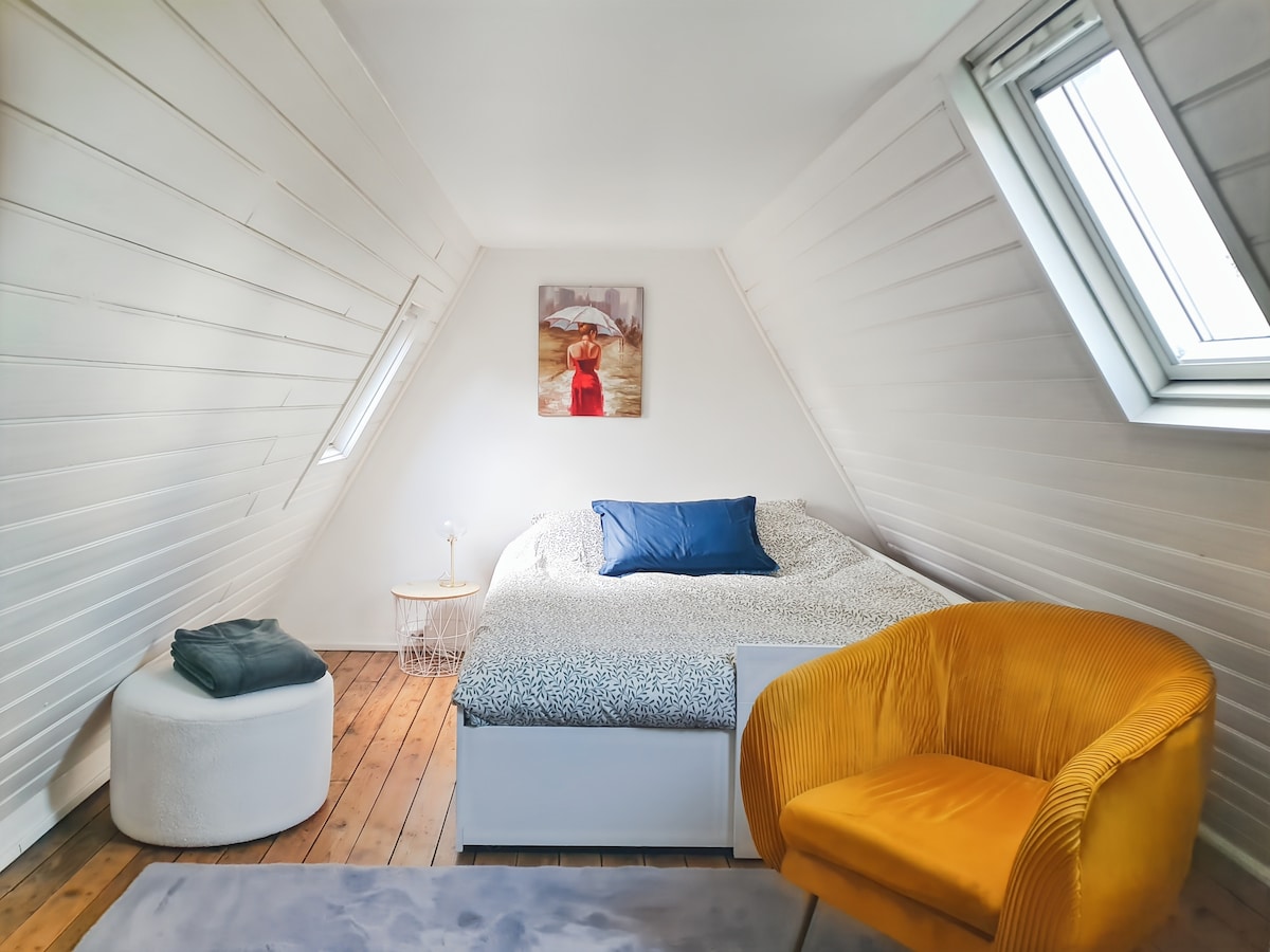 Բարի գալուստ Շարտրի պատմական կենտրոնի սրտում գտնվող պայծառ բնակարան La Porte Enchantée։ Դուք կվայելեք հանգիստ և հարմարավետ, մանրամասնորեն ձևավորված տարածք։ Հյուրասենյակից բացվում է քաղաքի տանիքների և տաճարի տեսարանը, որն ստեղծում է հանգստացնող միջավայր՝ հանգստի կամ աշխատանքի համար։ Բնակարանը, որը գտնվում է Պորտ Գիյոմում, թույլ է տալիս ոտքով հասնել քաղաքի կենտրոնը հաշված րոպեների ընթացքում։ Շենքի մոտակայքում անվճար միկրոավտոբուսներ կհասցնեն ձեզ երկաթուղային կայարան և քաղաքի կենտրոն։