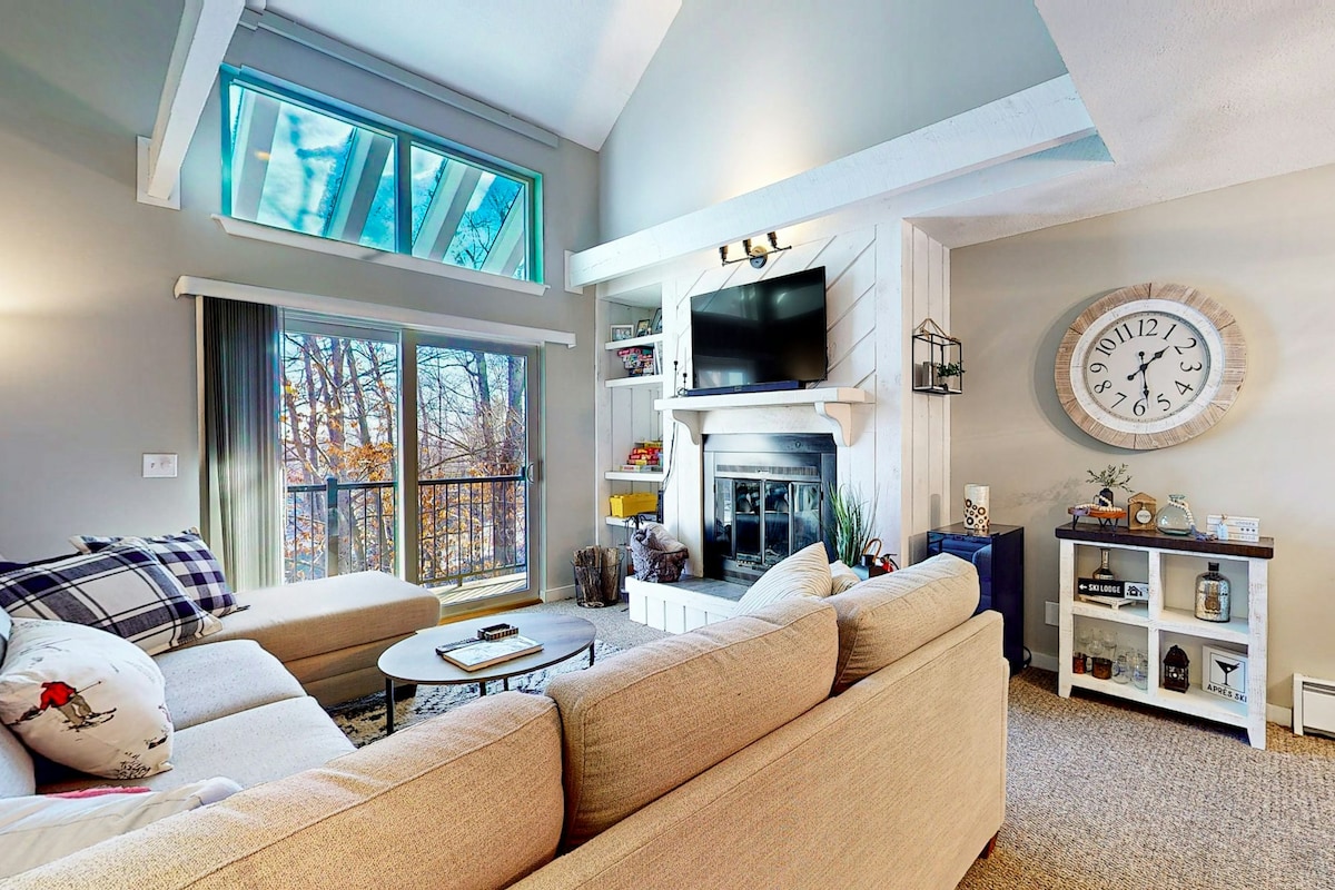 Նորացված կոնդոմինիում Winterplace Okemo - ում ։ Այս արևոտ անկյունը 3 ննջասենյակով ընդամենը մի քանի քայլ է դեպի A - B Quad - ի գագաթը: Ամբողջովին վերանորոգված ՝ հատակից մինչև առաստաղ Բուխարու սքանչելի վայրը ձեզ կպահի հարմարավետ հյուրասենյակում ։ Բացօթյա դահուկային պահարան միայն հետևի դռնից դուրս: Առջևի դռան կայանումը և վառելափայտը ներառված են ։ Լողավազանը բաց է և հասանելի է վարձակալների համար ամբողջ տարի: Ջակուզի ձմռան ամիսներին և թենիսի կորտեր ամռանը:
