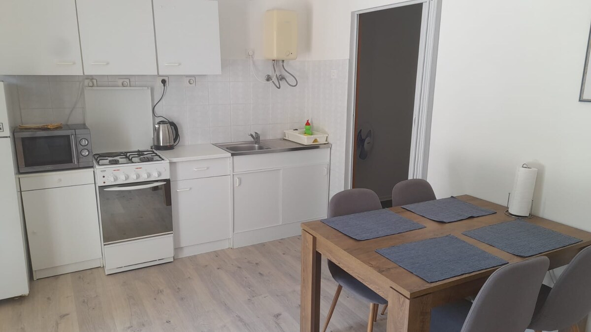 Մեծ բնակարան՝ երկու ննջասենյակով, ընդարձակ հյուրասենյակով, խոհանոցով և լոգասենյակով: Հյուրերի տրամադրության տակ է միկրոալիքային վառարան, հեռուստացույց և ծովը նայող երկար պատշգամբ։ Բնակարանի գինը ներառում է բոլոր ծախսերը, ներառյալ կացության հարկը, Wi-Fi-ը և տան դիմաց անվճար կայանման հնարավորությունը։ Մենք նաև առաջարկում ենք լրացուցիչ սենյակ՝ մեծ երկտեղանի մահճակալով (180x200) և լոգասենյակով, խնդրում ենք ստուգել օրացույցում առկայությունը: Լրացուցիչ սենյակի հետ միասին կարող ենք ընդունել ընդհանուր առմամբ 8 մեծահասակ: