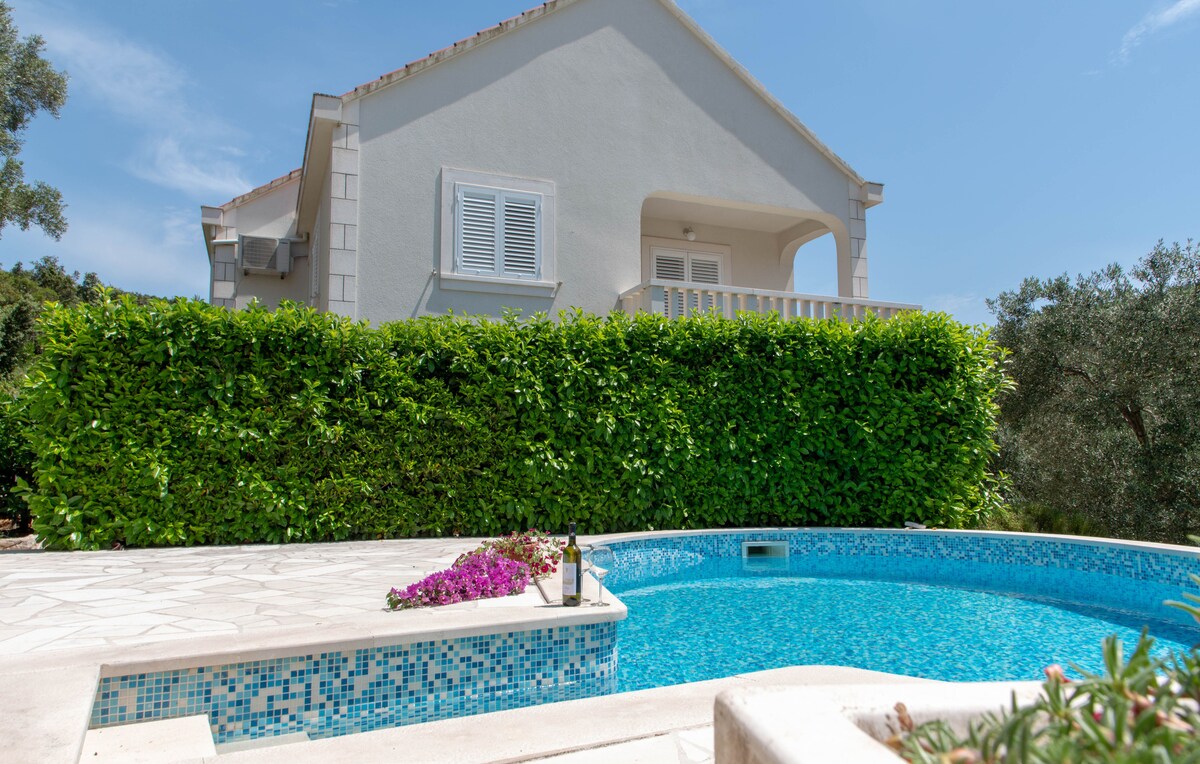 Լողավազանով այս հանգստյան տունը գտնվում է Կորկուլա քաղաքից 4 կմ հեռավորության վրա և ծովից 150 մ հեռավորության վրա ։ Տունը գտնվում է բլրի վրա, որտեղից բացվում են ծովի և շրջակա կղզիների տպավորիչ տեսարանները, որտեղ կարող եք վայելել առանձնություն և խաղաղություն ընդարձակ ծածկված կտուրում :. Տունն իդեալական է 4 հոգանոց ընտանիքի կամ զույգերի համար և բաղկացած է խոհանոցից, հյուրասենյակից, լրացուցիչ բազմոցից, ննջասենյակից, լրացուցիչ մահճակալից, լոգասենյակից, բուխարիից և կայանատեղիից ։ Տունն ունի ջրի բաք և ունի արևային էներգիայի համակարգ, որը պահանջում է մարմնավոր օգտագործում ։