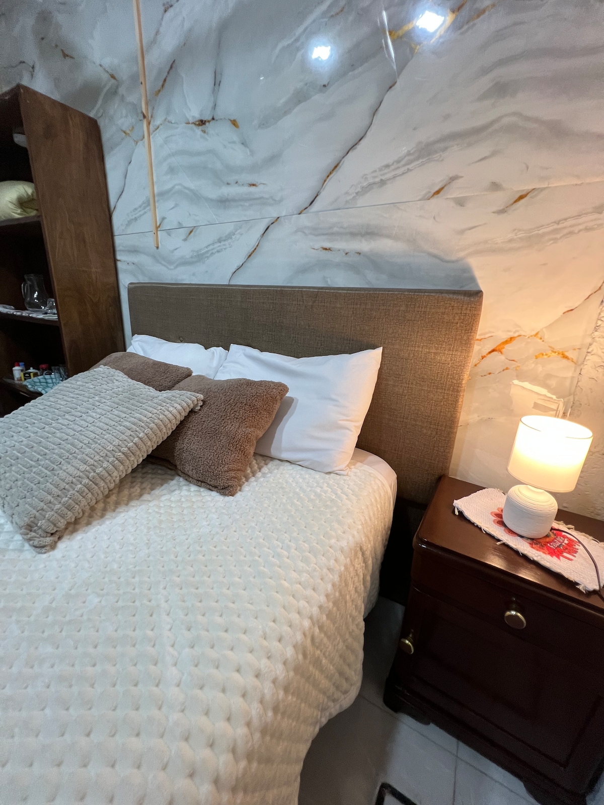 Բոլորովին նոր, լիովին կահավորված ։ Կարողությունը ՝ առավելագույնը 4 հոգու համար ։ 1 երկտեղանի մահճակալ և 1 բազմոց ։ Այցի համար ներառված են անկողնային պարագաներ և սրբիչներ ։ Մաքրումը կատարվում է, երբ հյուրը ժամանում է տարածք ։ Եթե ամենօրյա մաքրում է պահանջվում, պետք է պահանջեք այն (օրական 10 ԱՄՆ դոլար հավելավճար )։ Այն ունի 1 լոգասենյակ ՝ ցնցուղով և 1 զուգարանակոնքով ։ Լիովին կահավորված խոհանոց Գտնվում է Barrio Villa Morra - ում ։ Քայլեր դեպի սուպերմարկետներ ։ Գնումներ Մարիսկալից և Պասեո Լա Գալերիայից րոպեներ հեռավորության վրա ։