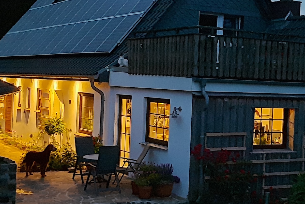 Liebe Gäste, Wir - eine vierköpfige Familie mit Hund, drei Katzen und Hühnern - freuen uns sehr Sie in unserer Ferienwohnung "Hunnkuhl" begrüßen zu dürfen. Die Ferienwohnung befindet sich in dem von uns bewohnten Doppelhaus in ruhiger Lage am Ende einer Sackgasse. Sie liegt im Erd- und Obergeschoss und bietet auf ca. 43 qm Platz für 4 - 5 Personen. Hinzu kommt noch eine großzügige Terrasse mit Blick auf den idylischen Garten. Wir hoffen, dass Sie sich bei uns wohlfühlen!