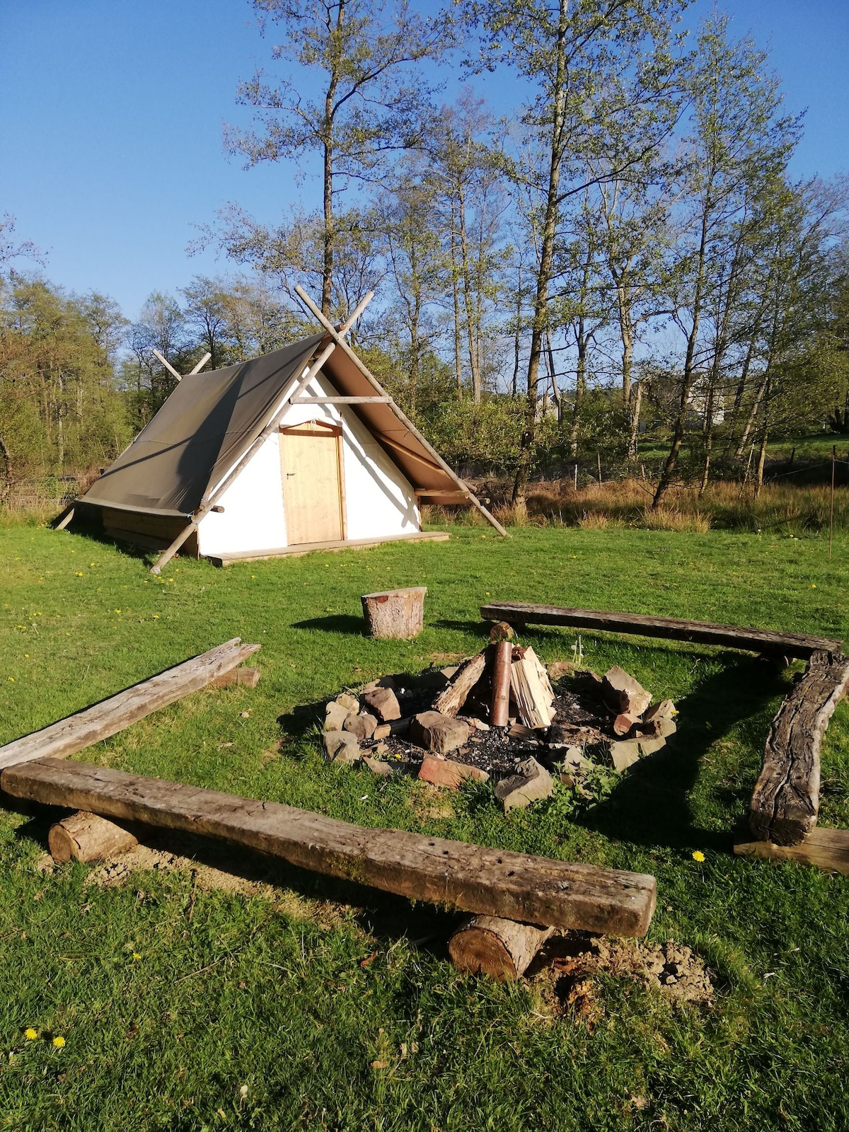 Պարզապես կահավորված պերճաշակ վրան (սեղան, 2 աթոռ և մահճակալ 1մ40 սավաններով և մխիթարիչով, առանց խոհանոցային սարքավորումների վրան), որտեղից բացվում է շատ գեղեցիկ տեսարան դեպի գյուղ և անտառներ: Ոչխարները քայլում են դաշտում և գալիս են ձեզ արթնացնելու... Զուգարան և ցնցուղ տանը (50 մետր), խորոված կամ խարույկ (եթե շատ չոր է, միայն խորոված, փայտ/խորոված լրացուցիչ): Գյուղ մսագործի խանութով, Bouillon - ը 8kms - ում: Հաճելի զբոսանքներ, Կայակ, լող գետում: Նախաճաշ ՝ հավելավճարով: